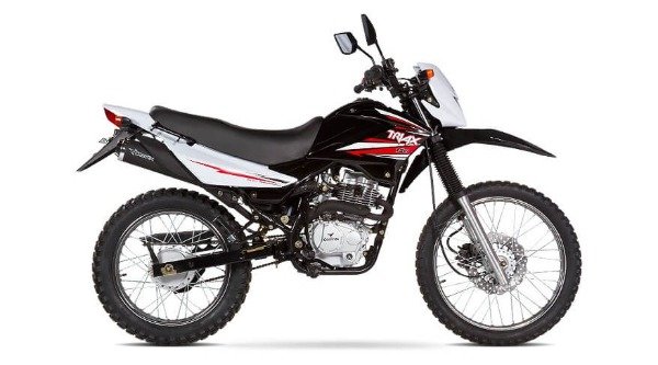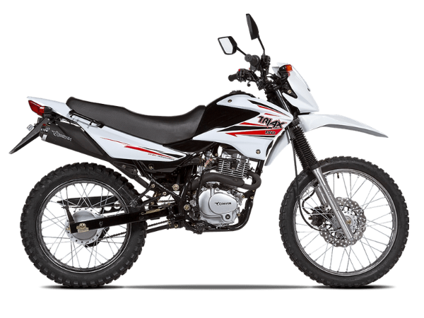MOTOR Monocilíndrico de 4T refrigerado por aire 149cc, CDI con avance electrónico arranque eléctrico / pedal de arranque. TRANSMISIÓN 5 Velócidades. SUSPENSIÓN Delantera: Horquilla hidráulica. Trasera: Monoamortiguador hidráulico. FRENOS Freno delantero: Disco hidráulico. Freno trasero: Tambor / Tipo manual. NEUMÁTICOS Neumático delantero: 3.00 x 21 / Llanta de rayos. Neumático trasero: 4.10 x 18 / Llanta de rayos. CAPACIDAD DE TANQUE 12 litros.