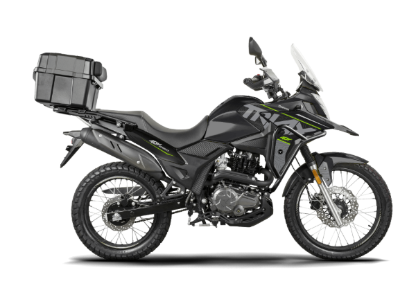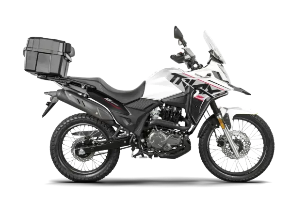 MotorMonocilíndrico OHC, refrigerado por aireCilindrada250 ccPotencia máxima19 HP @ 7.500 rpmVelocímetroDigitalColoresBlanco, Negro y Gris NardoEncendidoCDI electrónicoArranqueEléctrico y a pedalTransmisión6 velocidadesSuspensión delanteraHorquilla hidráulicaSuspensión traseraMono amortiguador hidráulicoFreno delanteroDisco ventiladoFreno traseroDisco ventiladoNeumático delantero90/90 – 19 / Llanta de rayosNeumático trasero110/90 – 17 / Llanta de rayosCapacidad del tanque16 litrosIluminaciónFull LedBaúl trasero33 LitrosParabrisasElevado de serieCargaCargador USB + Tipo C