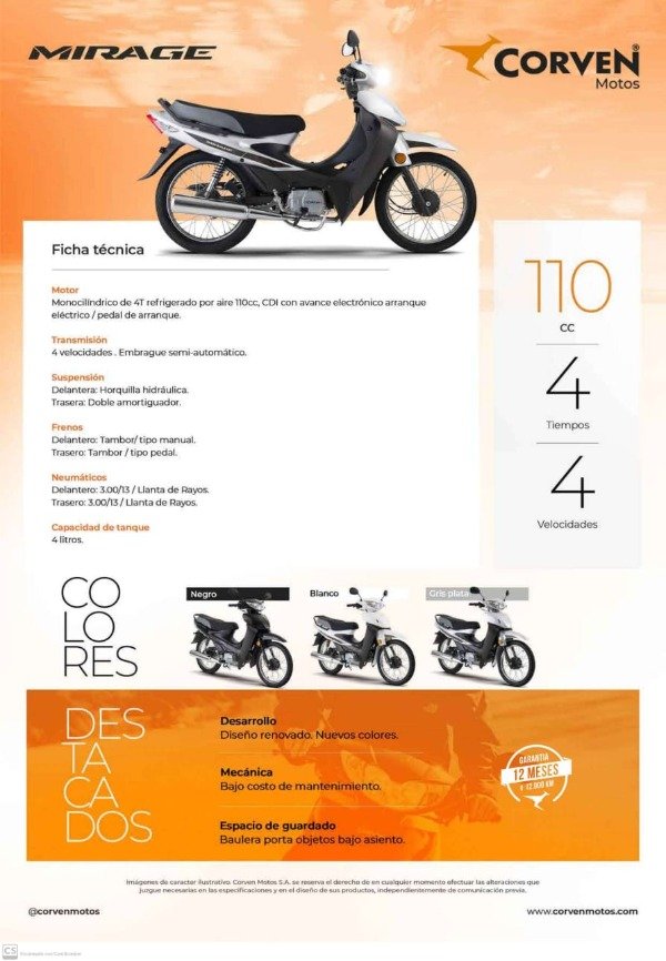 GUARDADO Amplio baúl bajo asiento. DISEÑO Diseño renovado, nuevos colores. MECÁNICA Bajo costo de mantenimiento.